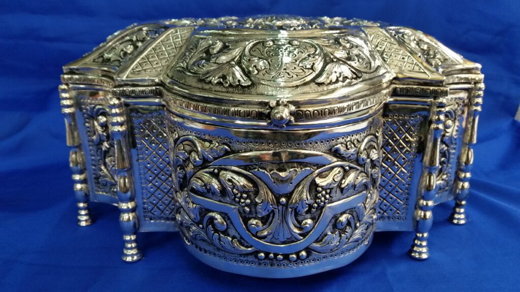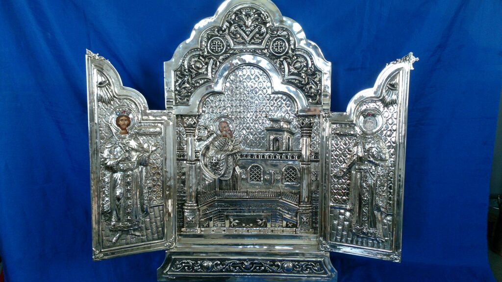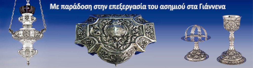 Εδώ μπορείτε να βρείτε πληθώρα από εκκλησιαστικά σκεύη όπως: καντήλια, αρτοφόρια, σταυροί, λειψανοθήκες, θυμιατά, όλα φτιαγμένα με την καλύτερη επεξεργασία ασημιού.